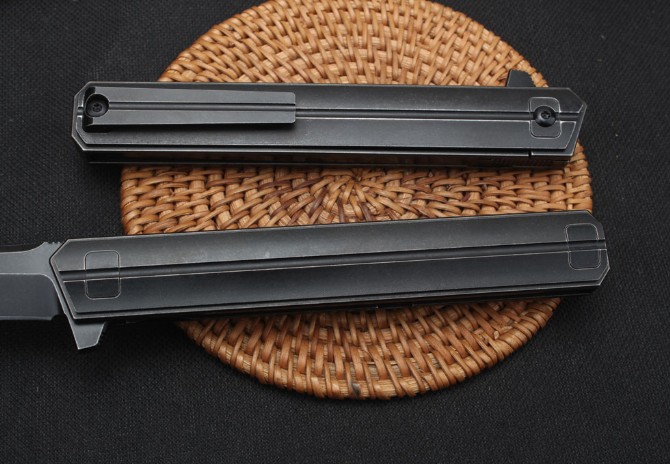有两种刀柄选择:钛合金/内衬片都是钛合金,颜色和刀片表面处理是一致的