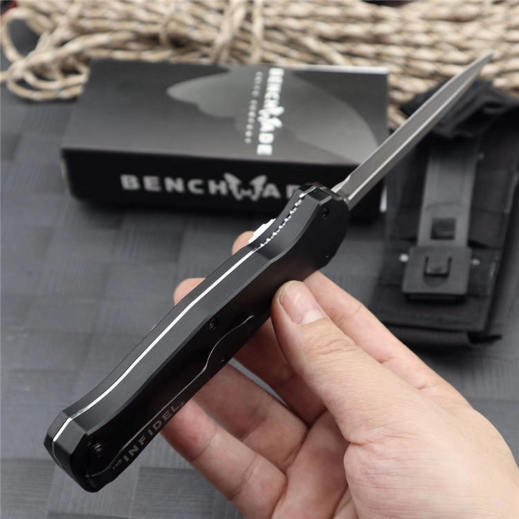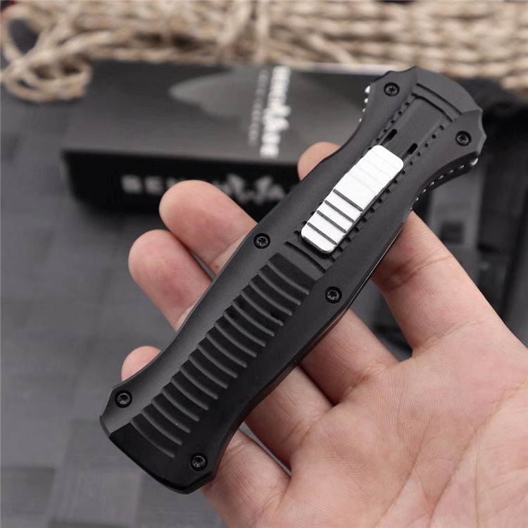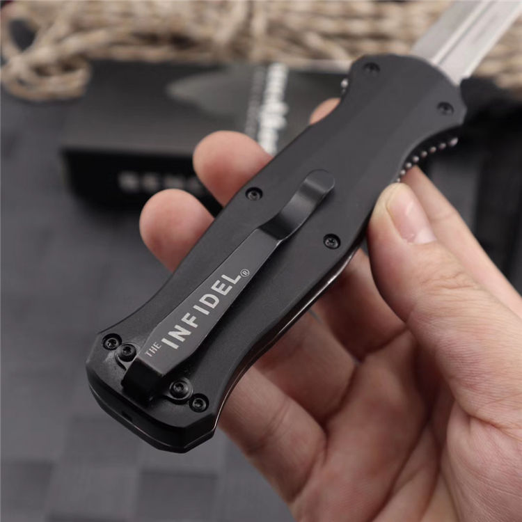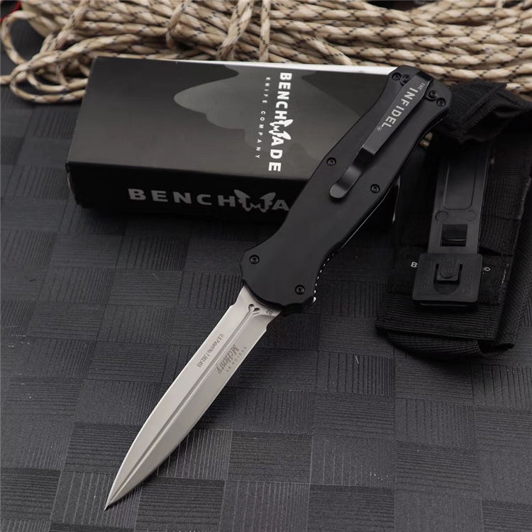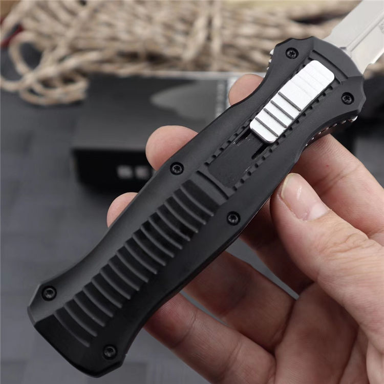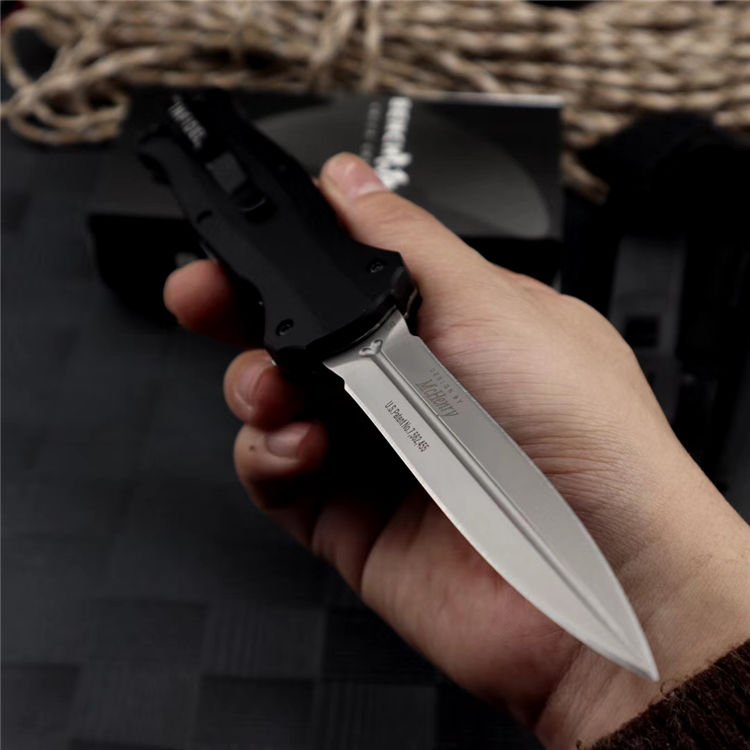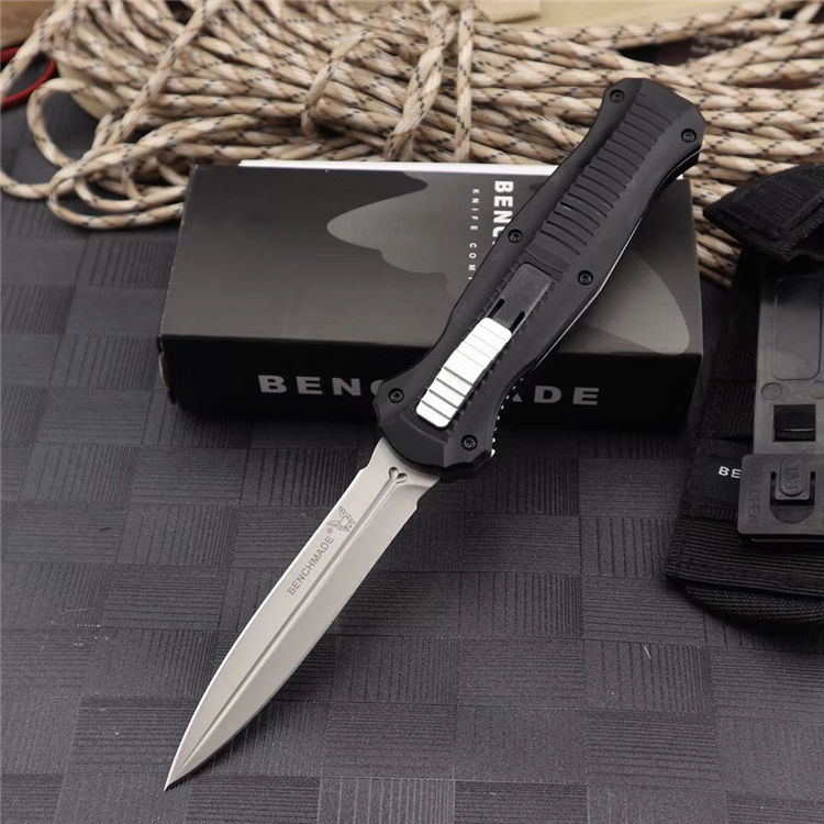 蝴蝶3310双刃直出跳刀 类型:直出弹簧刀 品牌:蝴蝶 全长:22.5cm 刃长:9.8cm 刃厚:3.2mm 刃材:D2 硬度:60HRC 总重量: 205.0克(含包装物) 表面:精细沙光(刀刃) 锁闭:弹簧直出 柄才:6061铝材经CNC电脑锣成型,极度精密 刀鞘:尼龙套