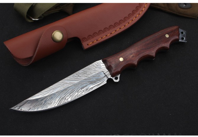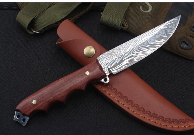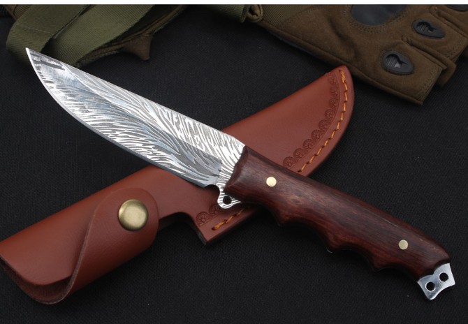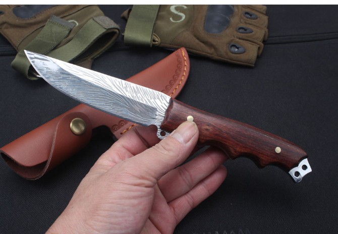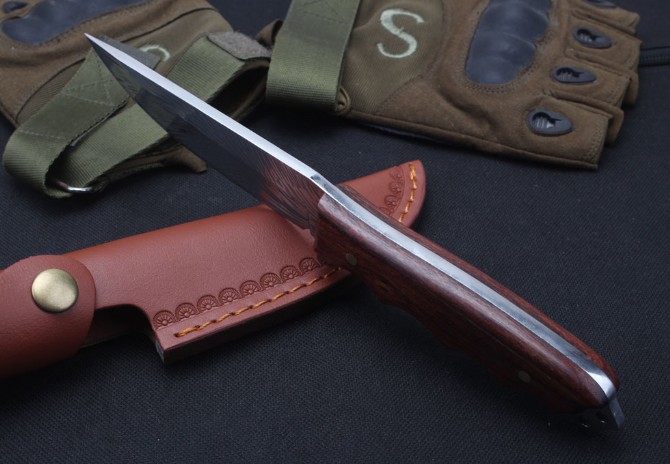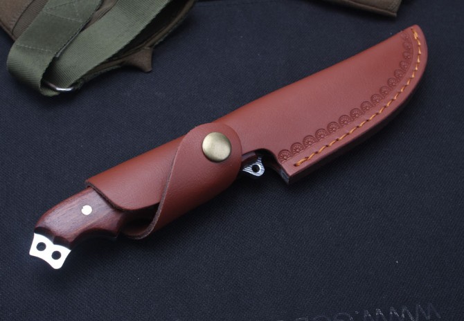狮王EN015直刀 类型:直刀 型号:EN015 全长:24.3cm 刃长:11.8cm 柄长:18.8 刃材:8CR13MOV 刃宽:2.8cm 表面:羽纹 硬度:58HRC 刃厚:0.48cm 热处理技术:真空热处理,表面效果:电脑数控水磨,砂光效果 柄材:一体钢+酸枝木 重量:282g含包装配有高端意大利手工植鞣皮皮套纸盒