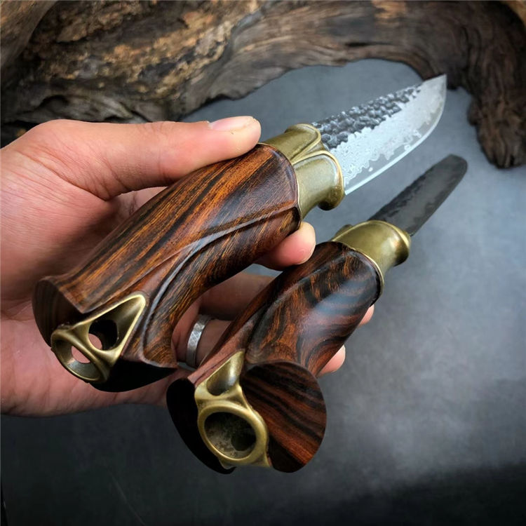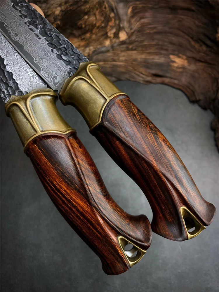 柄材:纯黄铜复古3D层叠浮雕刀隔+美国沙铁木