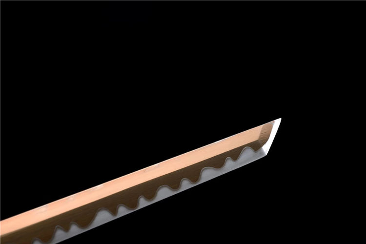 黄金浪人直刃武士刀 专业测试、请勿模仿 工艺:龙泉古法传统手工艺 装具:铁装 刃材:高性能猛钢研刃 柄材:实木绕绳 鞘材:实木漆鞘 赠品:高端锦盒、养护油、布