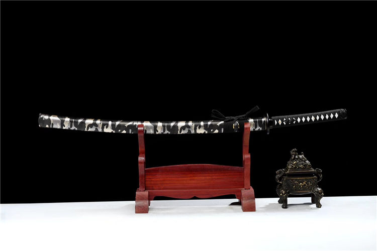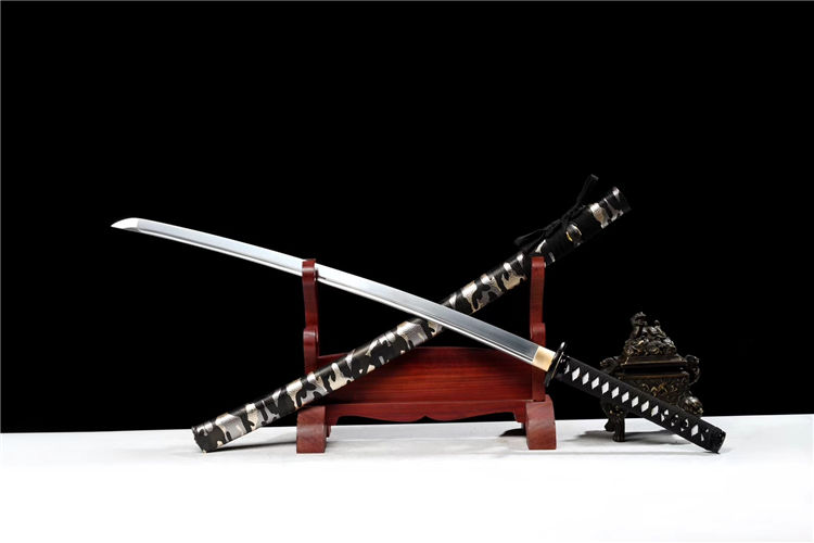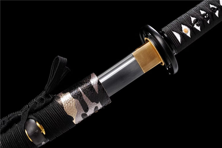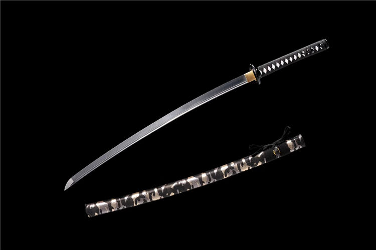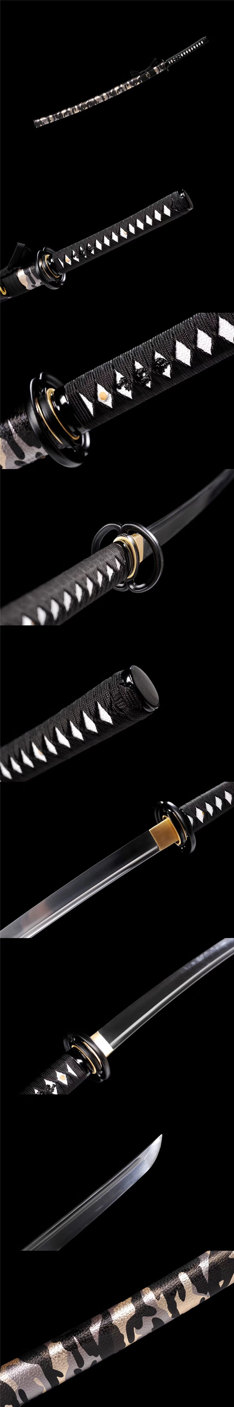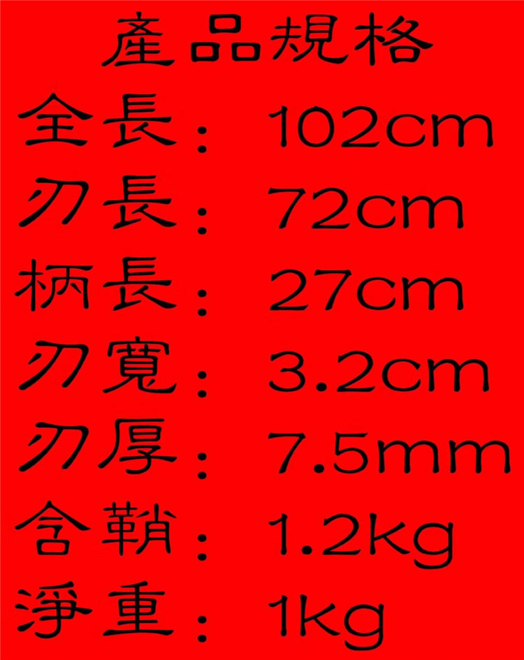 军魂武士刀 专业测试、请勿模仿 工艺:龙泉古法传统手工艺 装具:铁装 刃材:高性能锰钢 柄材:实木绕绳柄 鞘材:实木皮鞘 赠品:锦盒、养护油、布