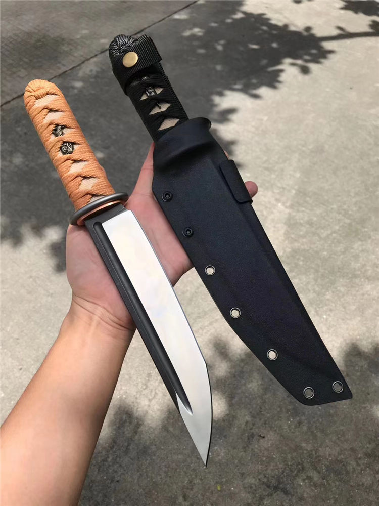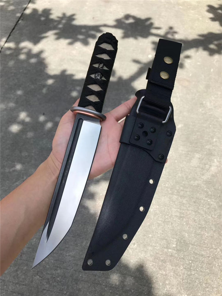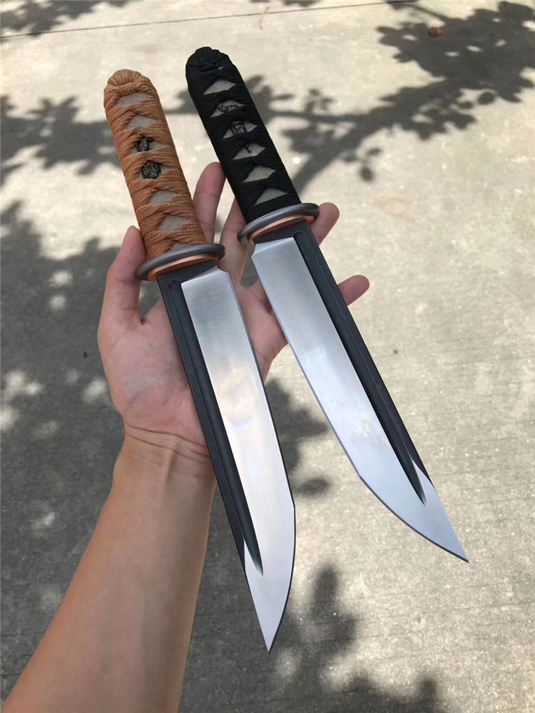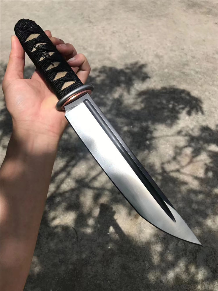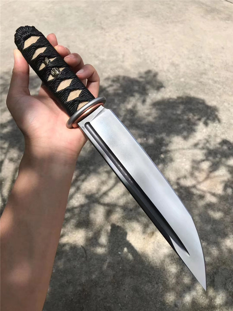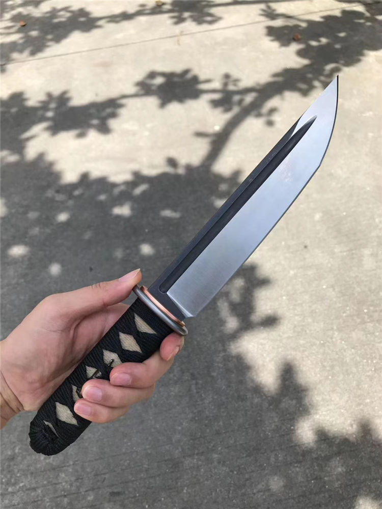 华匠坊战虎坦托直刀 总长:360mm 刃长:217mm 柄长:143mm 厚度:6.7mm 刃宽:41mm 钢材:DC53 硬度:59HRC 净重:520g