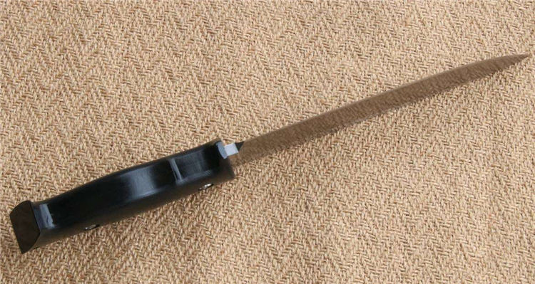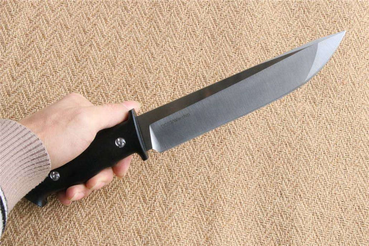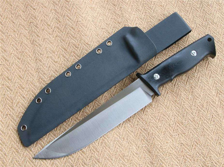 博尔特战舰直刀 全长:318mm 刃长:187mm 柄长:125mm 刃厚:6mm 刃最宽处:39mm 刃材:DC53(线切割开料) 硬度:61-62HRC 热处理:真空淬油热处理 柄材:黑色G10+定制加固螺丝钉 刀鞘:美国进口板料制作K鞘+带K夹 净重:400g 刃面:凹磨,平面幼拉丝处理,刃线立体感超强 类型:以锋利度,韧性保持度最出色 包装:黑色硬纸盒,刀油,伞绳