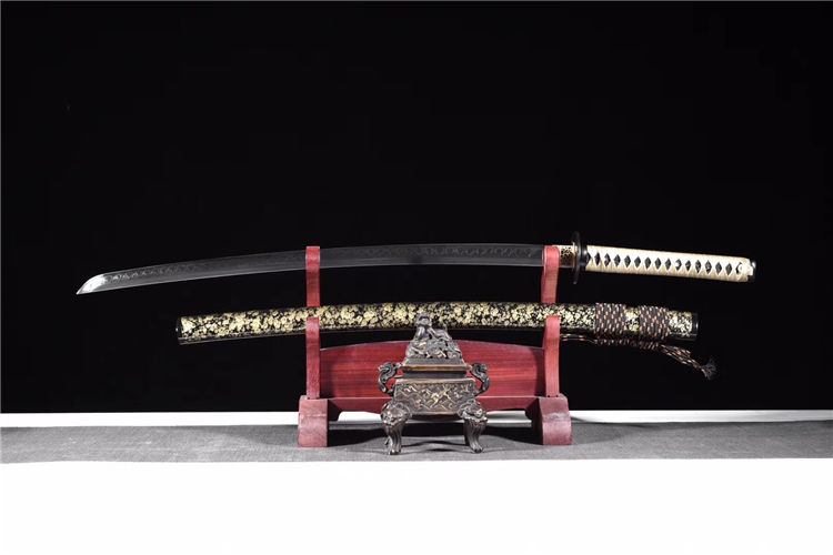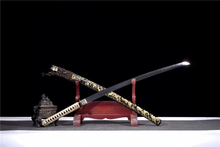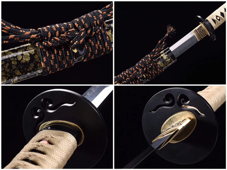 悟武士刀 专业测试、请勿模仿 工艺:龙泉古法传统手工艺 装具:铁装 刃材:T10烧刃 柄材:实木绕绳 鞘材:实木漆鞘 赠品:高端大锦盒、刀架、养护油、布