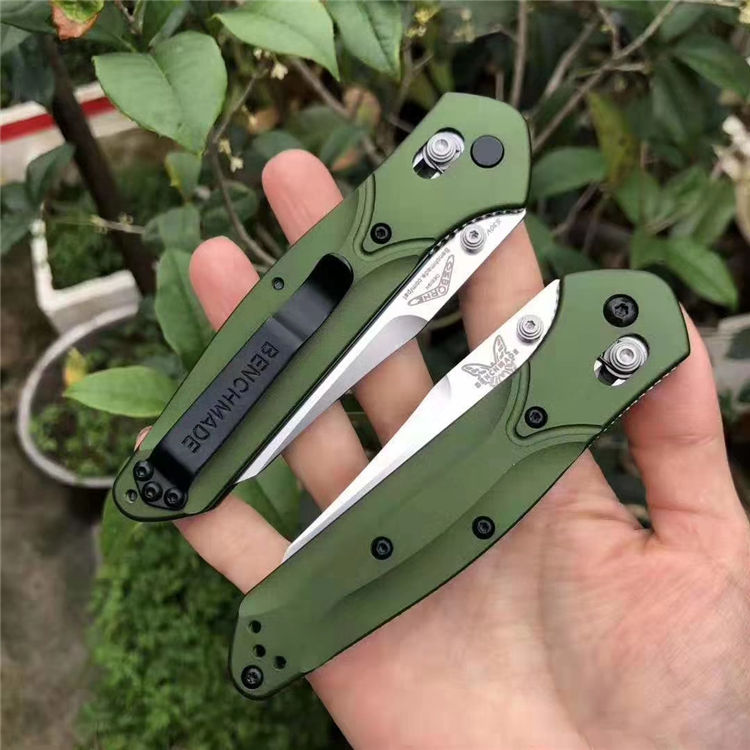绿色蝴蝶940折刀 全长:197mm 刃长:82mm 柄长:107mm 刃宽:25mm 刃厚:3mm 刃材:S30V 净重:162g(含包装) 硬度:59HRC 表面:砂光或黑钛 柄材:航空铝 刀夹:不锈钢 螺丝:不锈钢 包装:彩盒 结构:AXIS Lock轴锁 设计:Osborne奥斯本