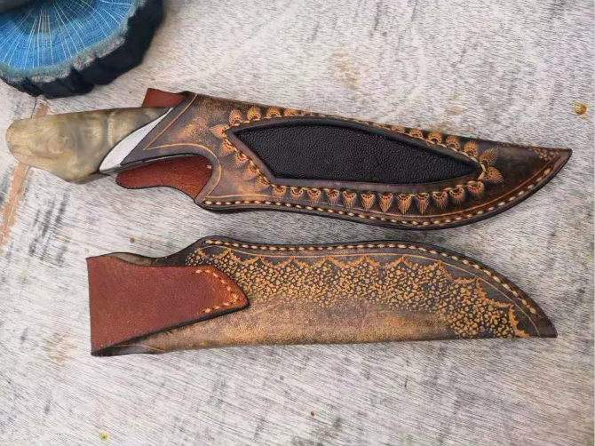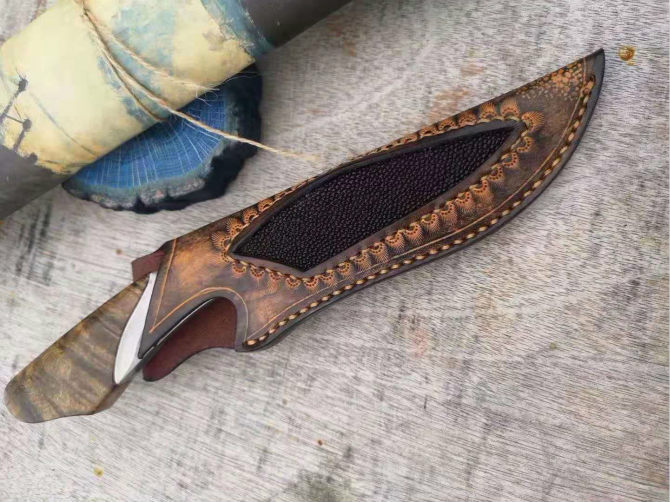 包装配件:手工缝线镶嵌皮艺刀鞘,原厂出口手工盒