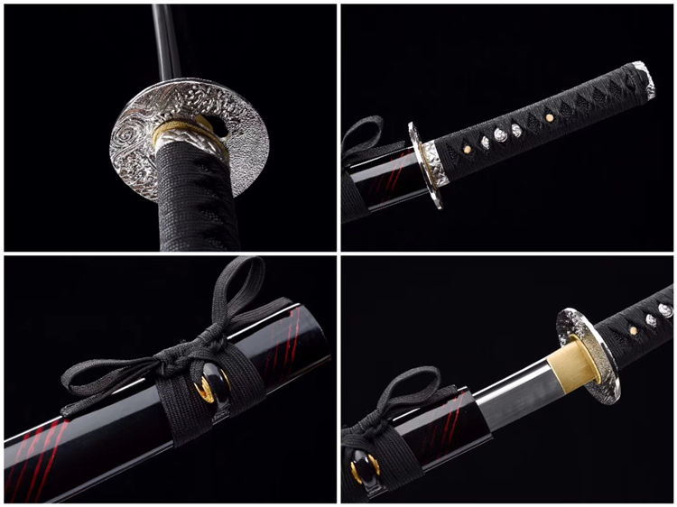 苍鹰武士刀 专业测试、请勿模仿 工艺:龙泉古法传统手工艺 装具:合金 刃材:T10烧刃 柄材:实木绕绳 鞘材:实木漆鞘 赠品:锦盒、养护油、布