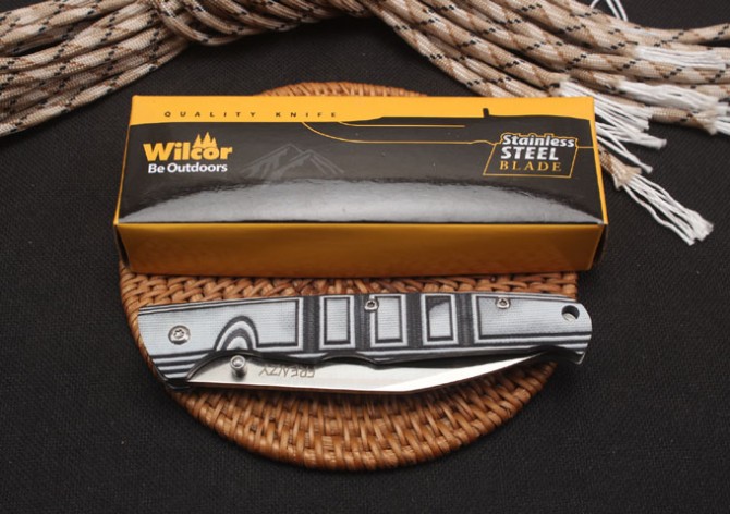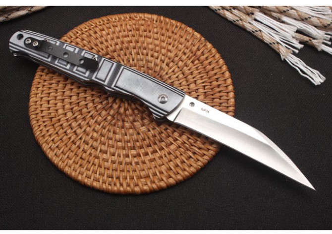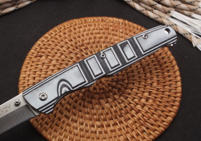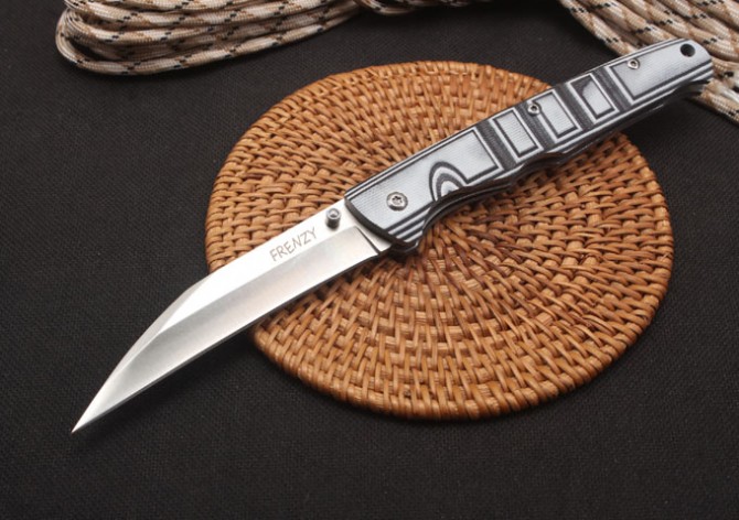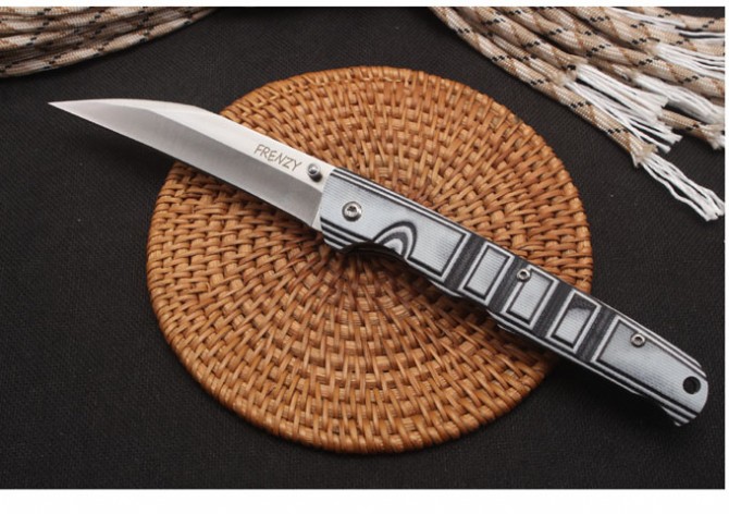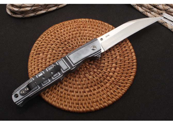 混血儿折刀 全长:20.5cm 刃长:8.9cm 柄长:11.4cm 刃宽:1.6cm 刃厚:3.5mm 刃材:8CR18MOV 重量:105g(含包装) 硬度:58HRC 表面:精细沙光 柄材:钢+G10 锁型:侧锁 其他:彩盒