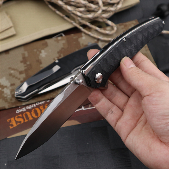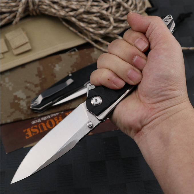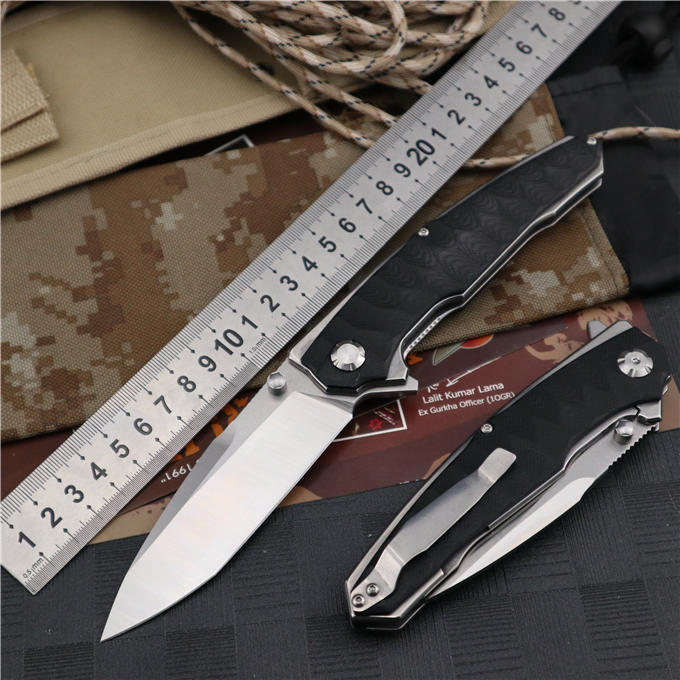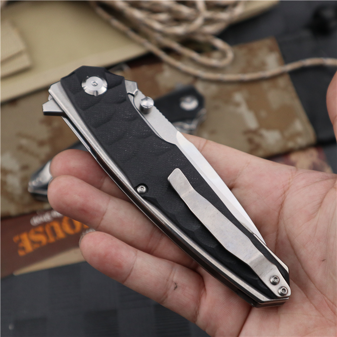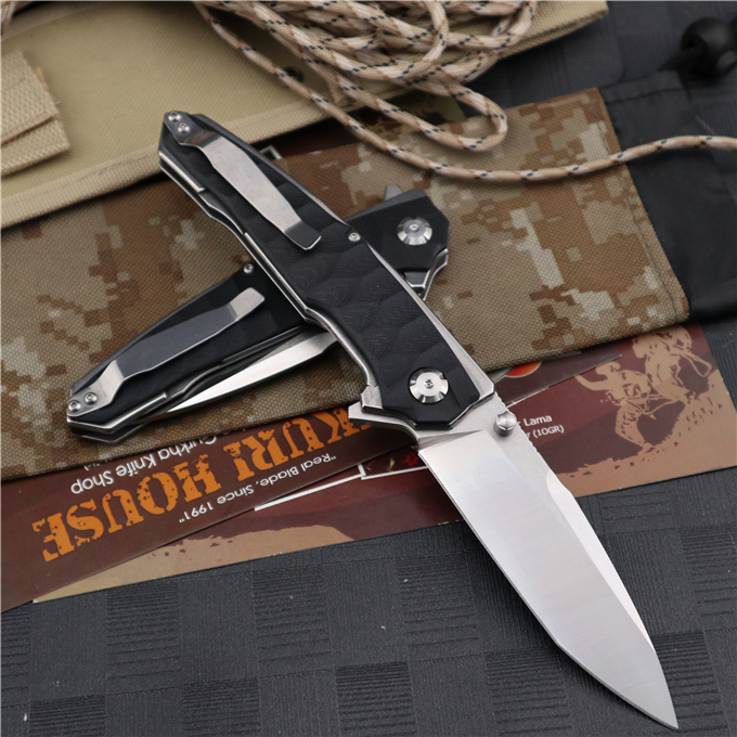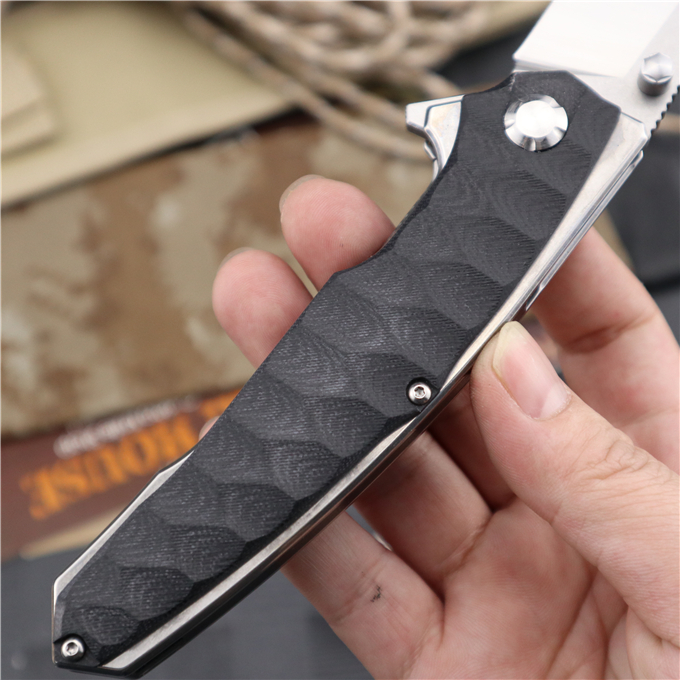 蟒蛇G10折刀 全长:24.0cm 刃长:9.5cm 柄长:14.5cm 刃宽:3.1cm 刃厚:4.1mm 刃材:9CR18MOV(刀刃数控磨工处理) 刀重:230G 总重:245g(含包装物) 硬度:58-60HRC 表面:刀刃真空处理,石洗伴丝光 柄材:正反面全钢柄缕空减重处理 刀夹:钢夹 锁型:线锁 螺丝:所有螺丝420不锈钢硬度HRC45,全CNC精雕加工 结构:线锁结构、锁刀接触镶嵌合金粒、陶瓷定位珠、内置平面滚针轴承垫片