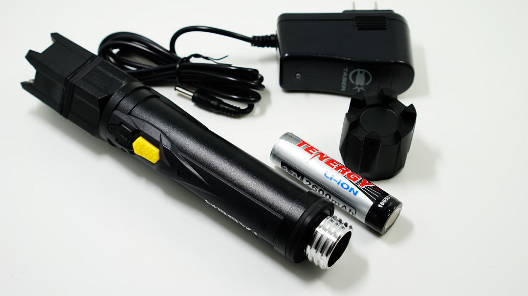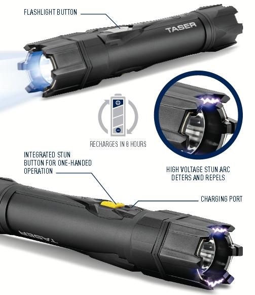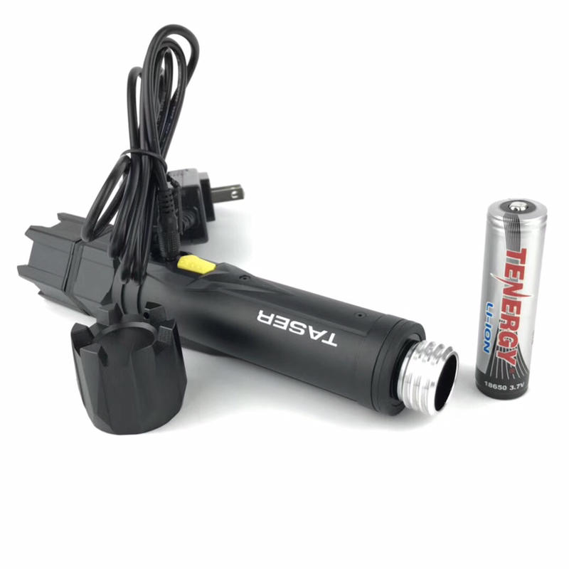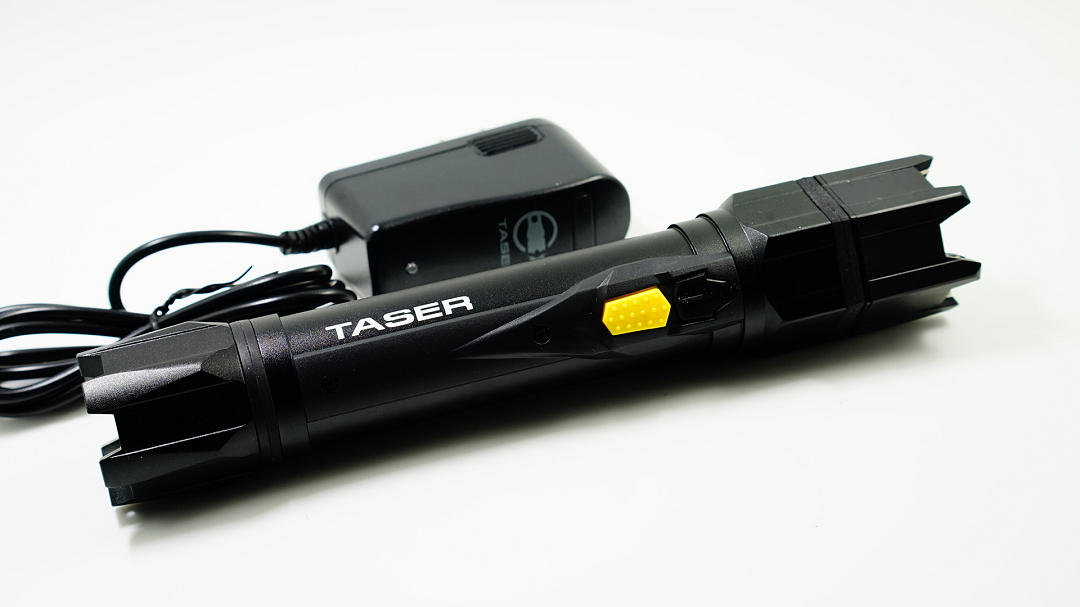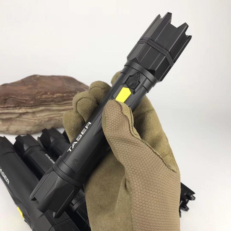 美国泰瑟手电功能:-适用于个人防卫及军警执法;-5万伏高压电击,可产生剧烈的疼痛,让你的对手瞬间丧失攻击能力(但不会致命或者致残)-130流明的高亮输出,黑暗环境中可使人短时目眩; 也可用于平时的日常照明;使用:-筒身上有两个按钮:灰色按钮控制手电亮度开关; 黄色按钮控制电击开关-必须在点亮手电的状态下,才能按动黄色按钮开启电击功能;(该设计是为了在正常关机状态下误操作而开启电击功能)-放电时可以对准四肢、背部; 不可对准头部和心脏部位-单次电击时间不要超过5秒(否则可能损伤电筒内部的元器件)参数:-放电电压: 5万伏,可100次 5秒 放电(啪啪啪)-照明亮度:130流明,满电可持续照明5小时-规格:长8.2"(20.9cm),高1.4 "(3.5cm) / 9.5盎司(270g)-使用电池: 18650可充锂电池-原厂附件:220V充电器*1;2600毫安时 18650锂电池*1
