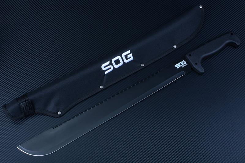 美国SOG哨格60厘米户外野营超大砍 全长:609.6MM 刃长:457.2MM 刃厚:2.73MM 柄材:塑料 附件:尼龙鞘 刃型:水滴头 重量:521.5g