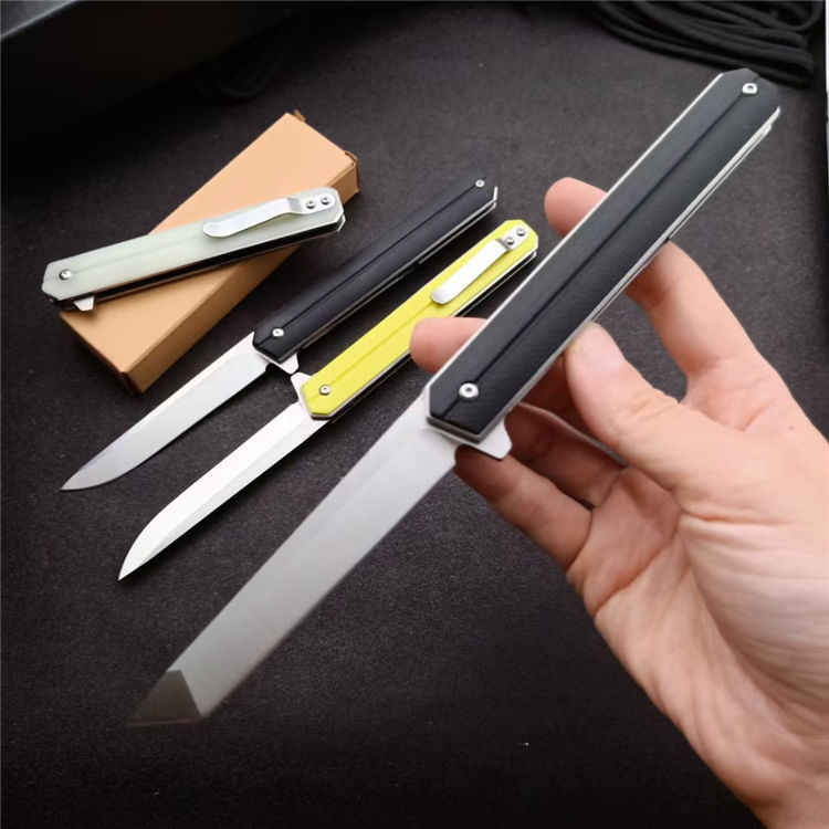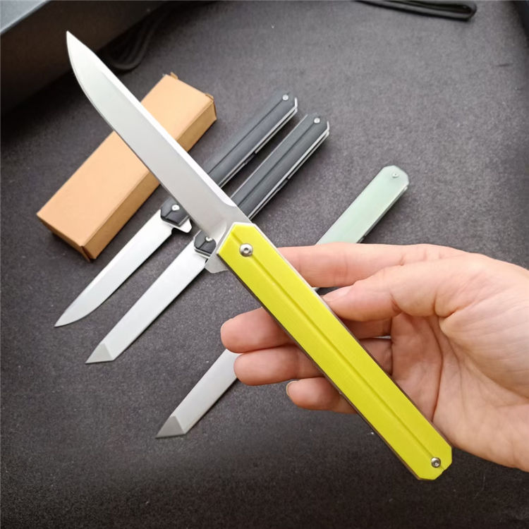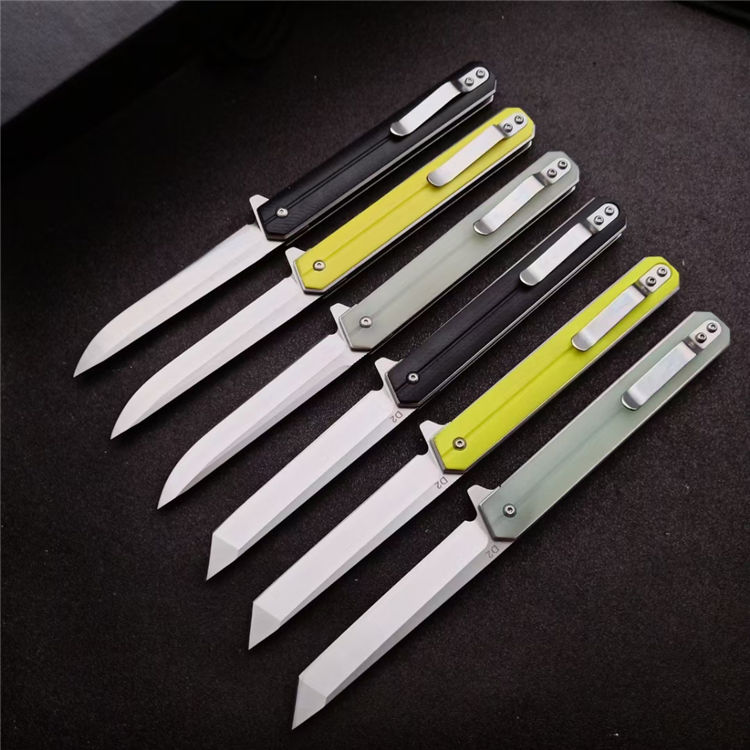 D2钢指挥官折刀 全长:21cm 刃长:9cm 柄长:12cm 刃宽:1.8cm 刃厚:4mm 刃材:D2 硬度:58HRC 表面:砂光 柄材:G10 重量:120g 刀夹:不锈钢 包装:纸盒