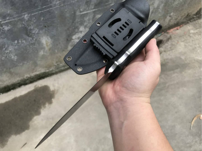 百炼代工挺进者直刀 全长:260MM约 刃长:130MM 刃厚:5.9mm 刃材:DC53 硬度:61 柄材:G10 刀鞘:进口k版材料战术K鞘背夹多功能 表面:砂光/石洗两种 效果真实钢材希望每一位不要错过多谢支持自己作品准备测试视频请关注