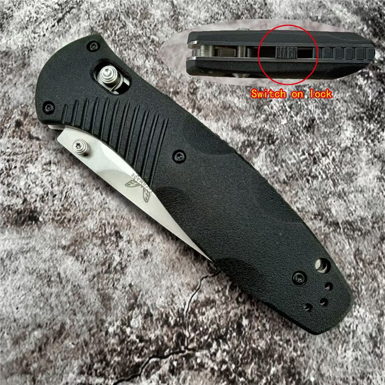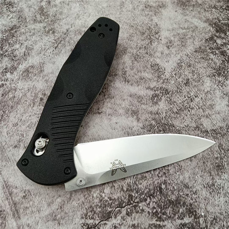 巨力版蝴蝶580折刀 型号:580 全长:212mm 刀长:91.5mm 闭合长度:120.5mm 刃材:440c 硬度:58-61HRC 表面:钢本色 刃厚:3.1mm 柄长:120.5mm 内衬锁型:AXIS 重量:120g
