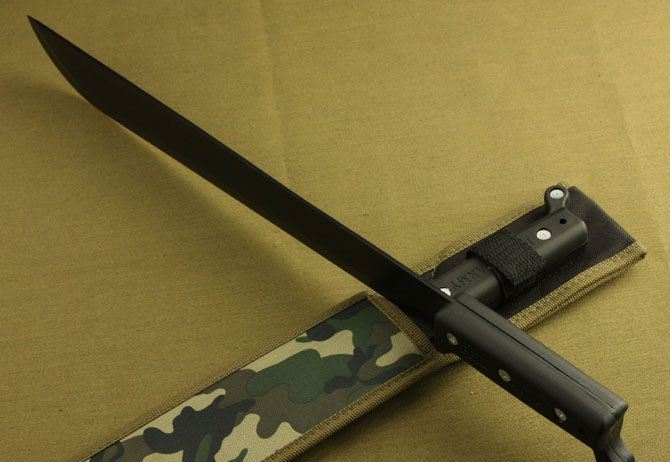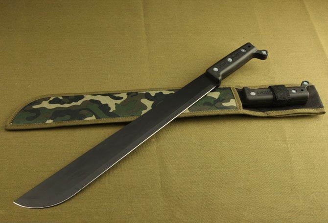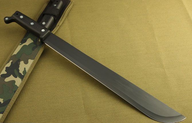 全长:55cm 刃长:41.5cm 柄长:13cm 刃宽:4cm 刃厚:0.28cm 刃材:5Cr13MoV 柄材:ABS 硬度:56HRC 重量:540克 表面处理:氧化黑