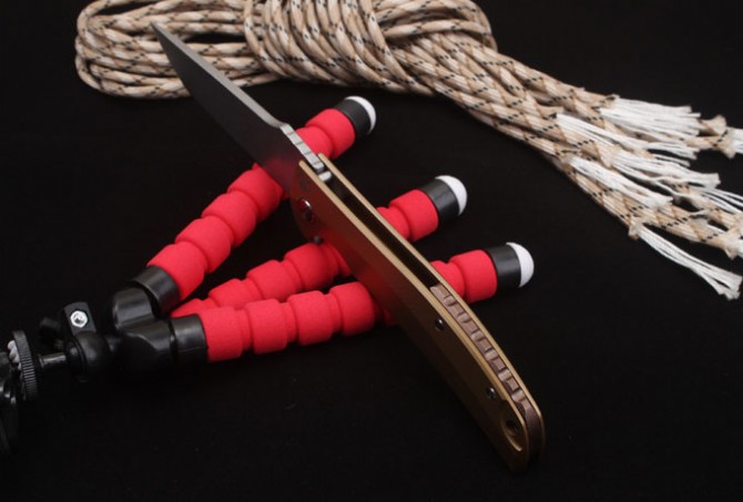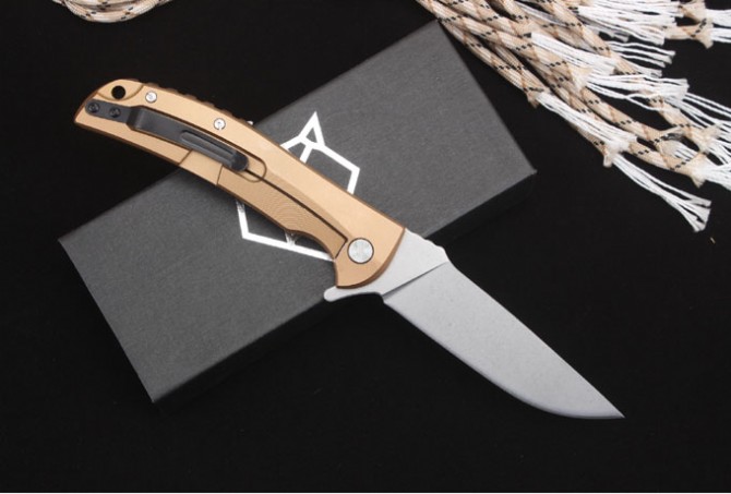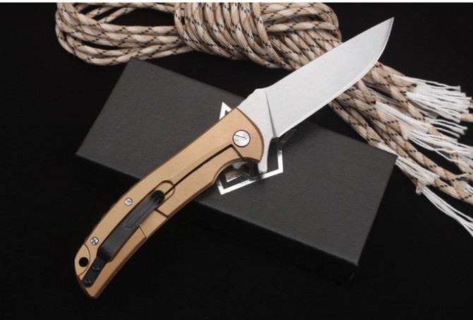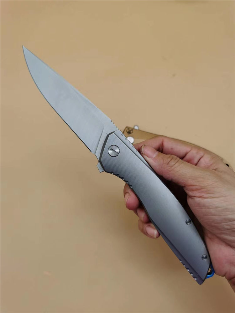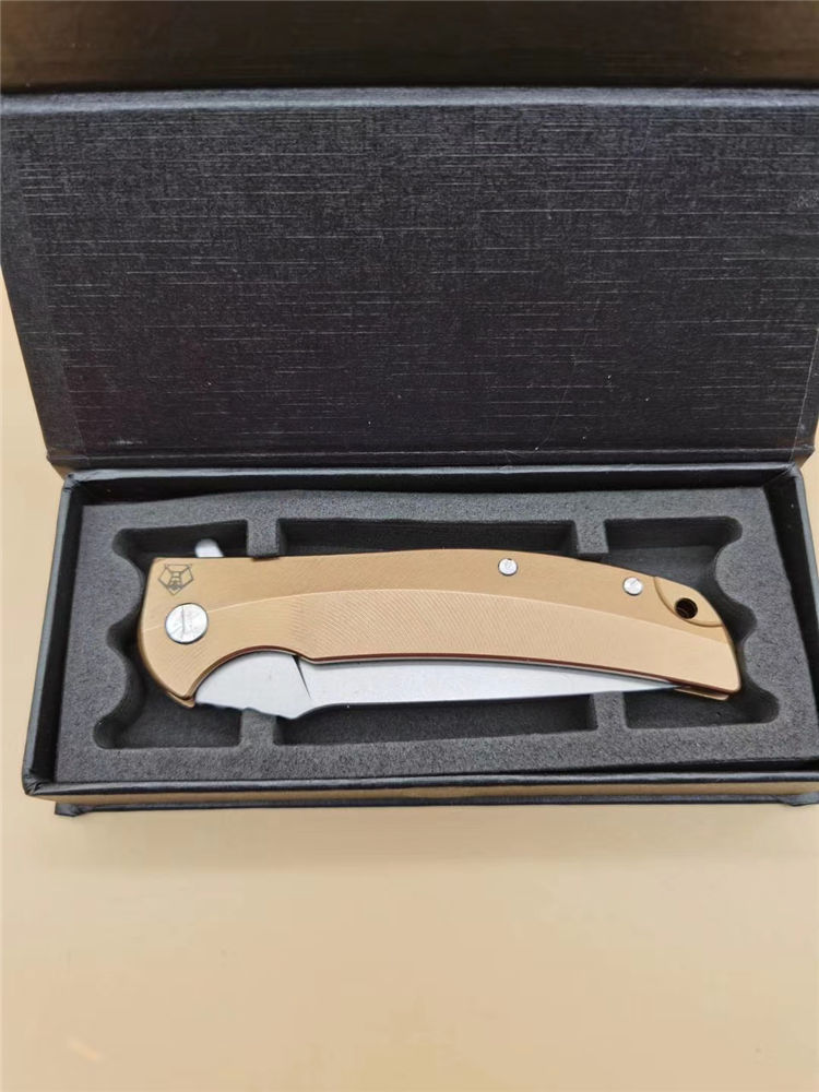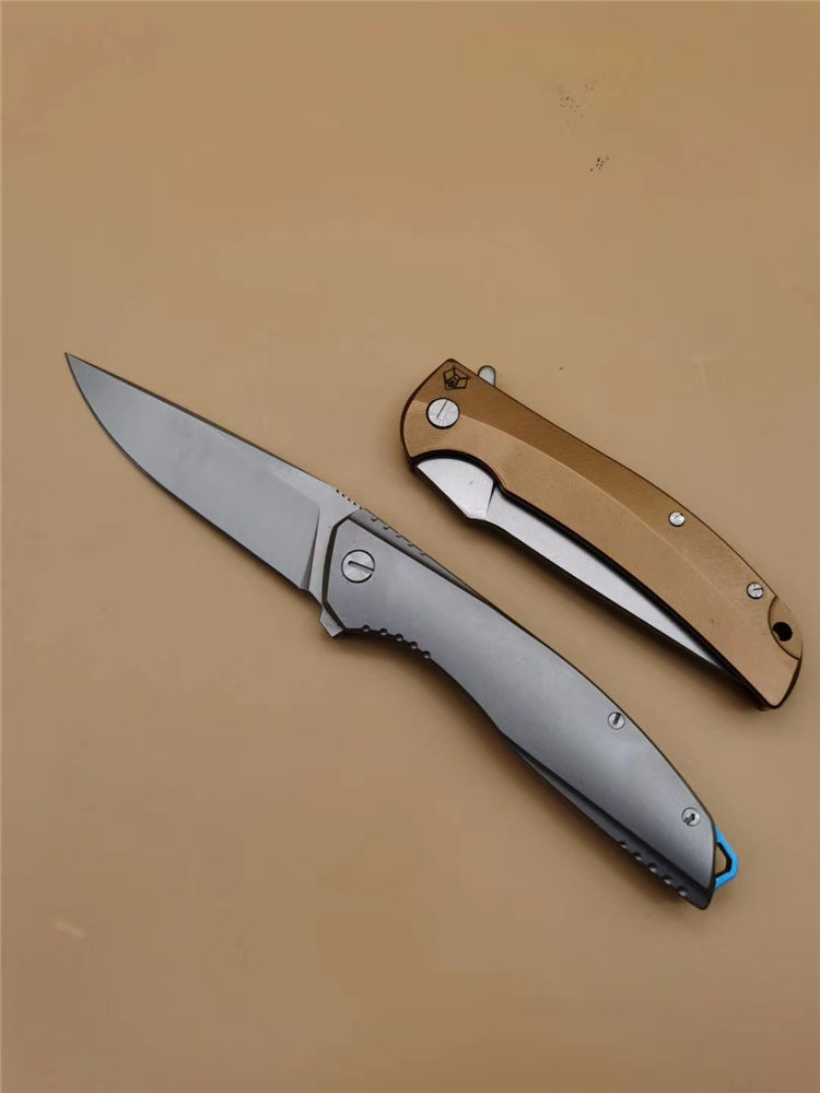 熊头全钢轴承折刀 总长:223mm 刃长:98mm 闭合长度:125mm 刃厚度:3.9mm 刀片表面处理:石洗 系统:滚珠轴承 刀重:161g 刀片材质:D2 手柄材质:全钢 硬度:58-59HRC