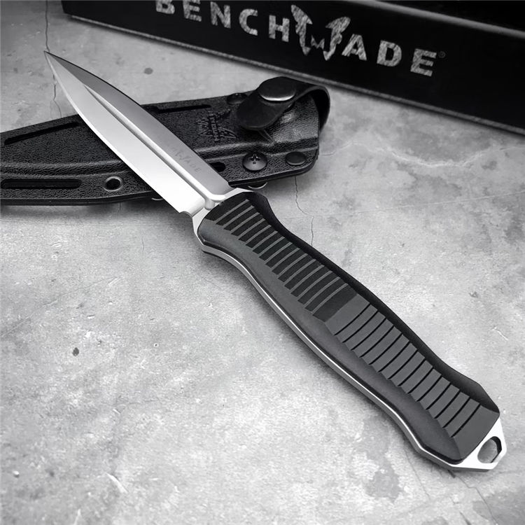 蝴蝶133双刃直刀 机制:固定刀片 行动:固定叶片 长度:4.52”(11.48cm) 叶片厚度:0.144”(3.658mm) 总长度:9.21”(23.39厘米) 刀片钢:D2工具钢(60-62HRC) 手柄厚度:0.48”(12.192mm) 重量:5.11盎司。(114.87克)