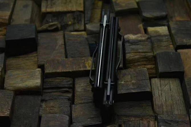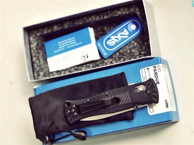 蝴蝶530折刀 全长:18.8CM 刀长:8.3CM 闭合长度:10.5CM 刃厚:2..2MM 表面处理:黑涂层/砂光 硬度:56-58HRC 净重:53.7克