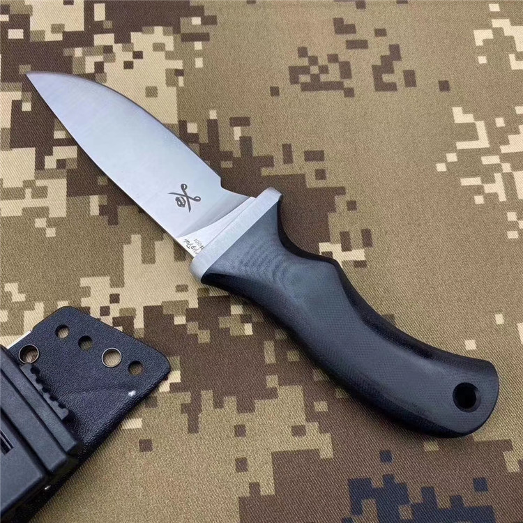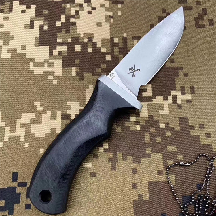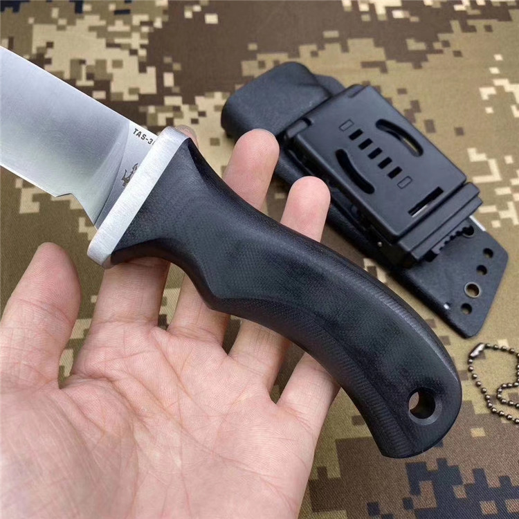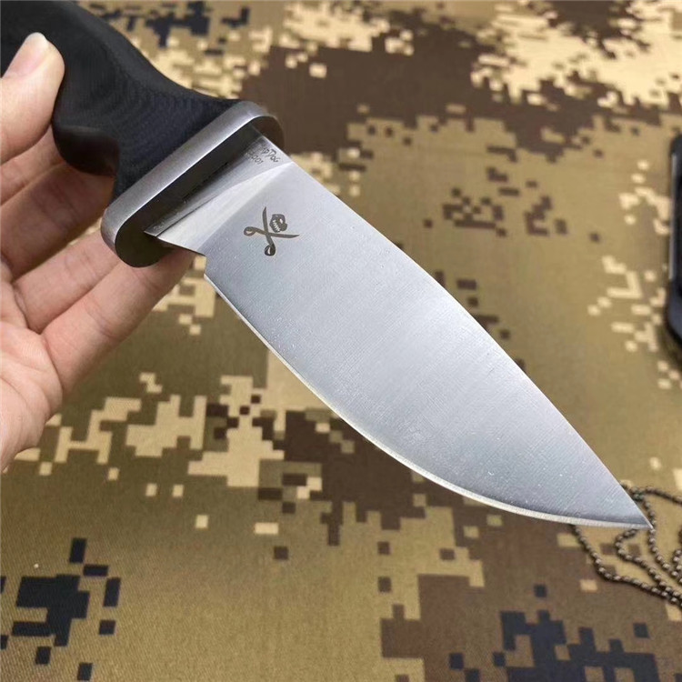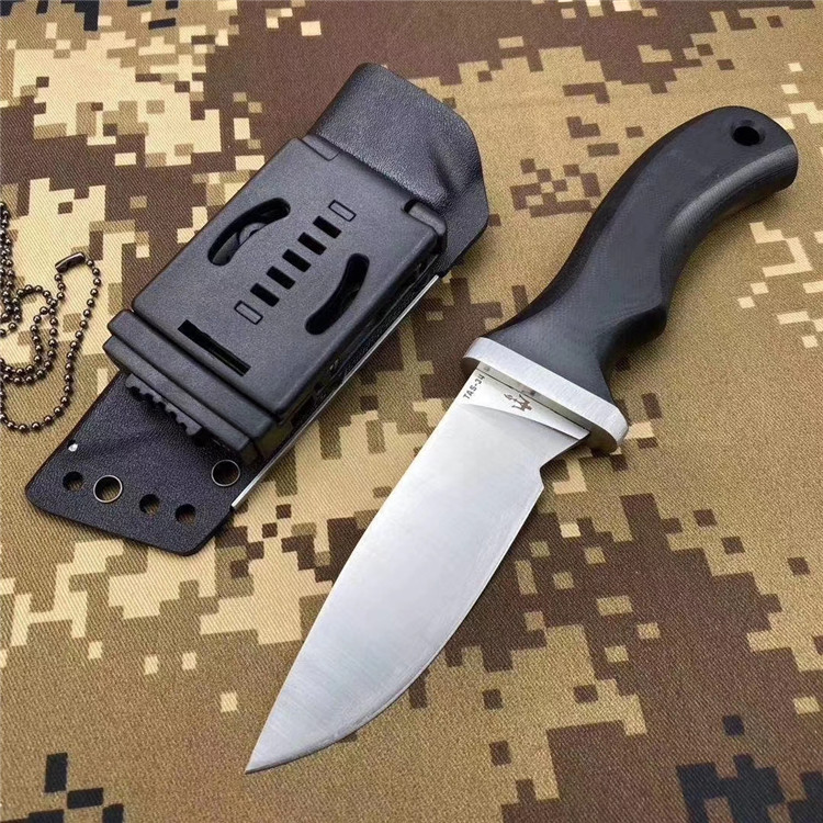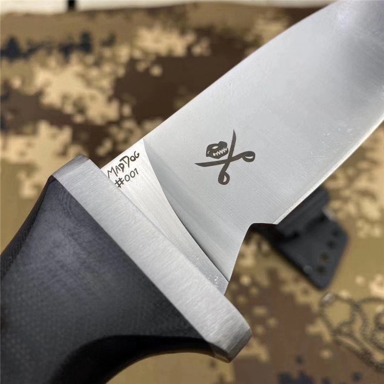 美国疯狗猎豹直刀 总长:24cm 刃长:10.5cm 刃厚:5mm 刃宽:3.3.cm 重量:236g 钢材:日立公司ATS-34合金不锈钢 热处理:专业真空热处理 硬度:60-61HRC 表面工艺:缎面砂光 开刃方式:水冷多次开刃 柄材:黑色G10复合材质全包手柄 刀套:进口K鞘+金刚磨刀是+活动夹子