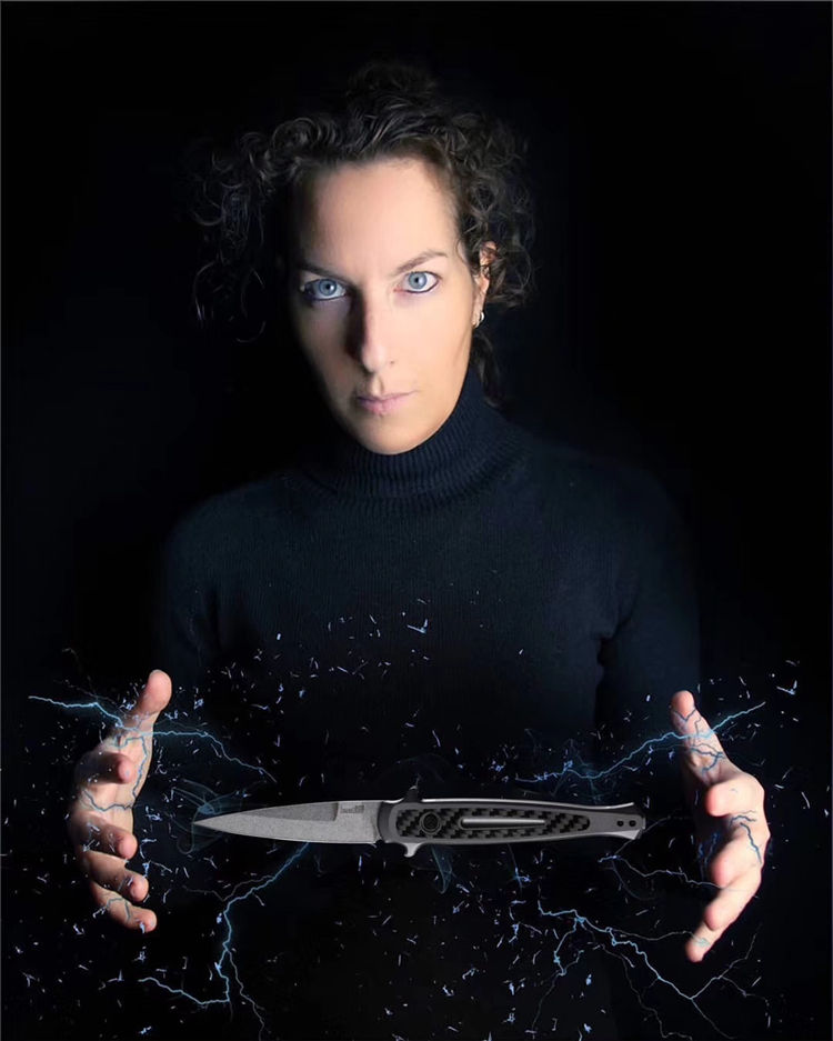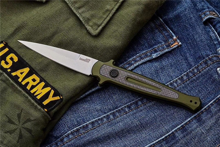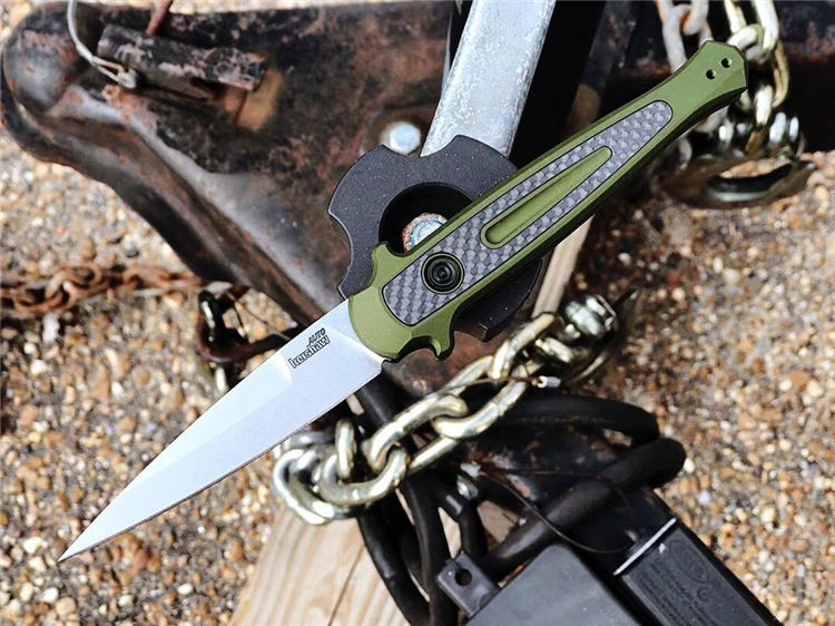 卡秀Launch8侧开跳刀 名称:卡秀Launch 8(简称:卡秀 L8 ) 全长:20.9cm 刃长:8.9cm 厚:0.28cm 刃材:CPM-154 柄材:航空铝+碳纤维贴片 总重:68g 刀身靠近根部的最显眼处,依旧是卡秀的传统字标。反面同位置则清楚的标着美国制造和钢材型号