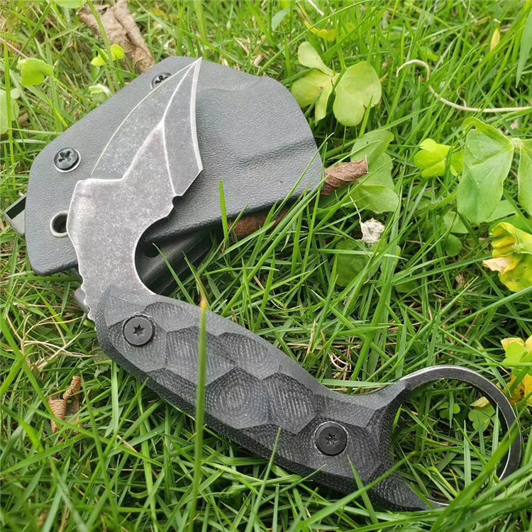 Shura蝎子轻兵爪刀 全长:14.5(直线) 柄长:11.5刃 刃材:AUS-8(真空热处理) 硬度:58HRC 柄材:G10 刀鞘:K鞘 重量:160g(净重)225g(毛重)