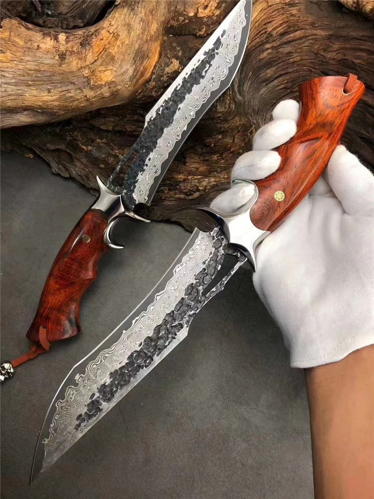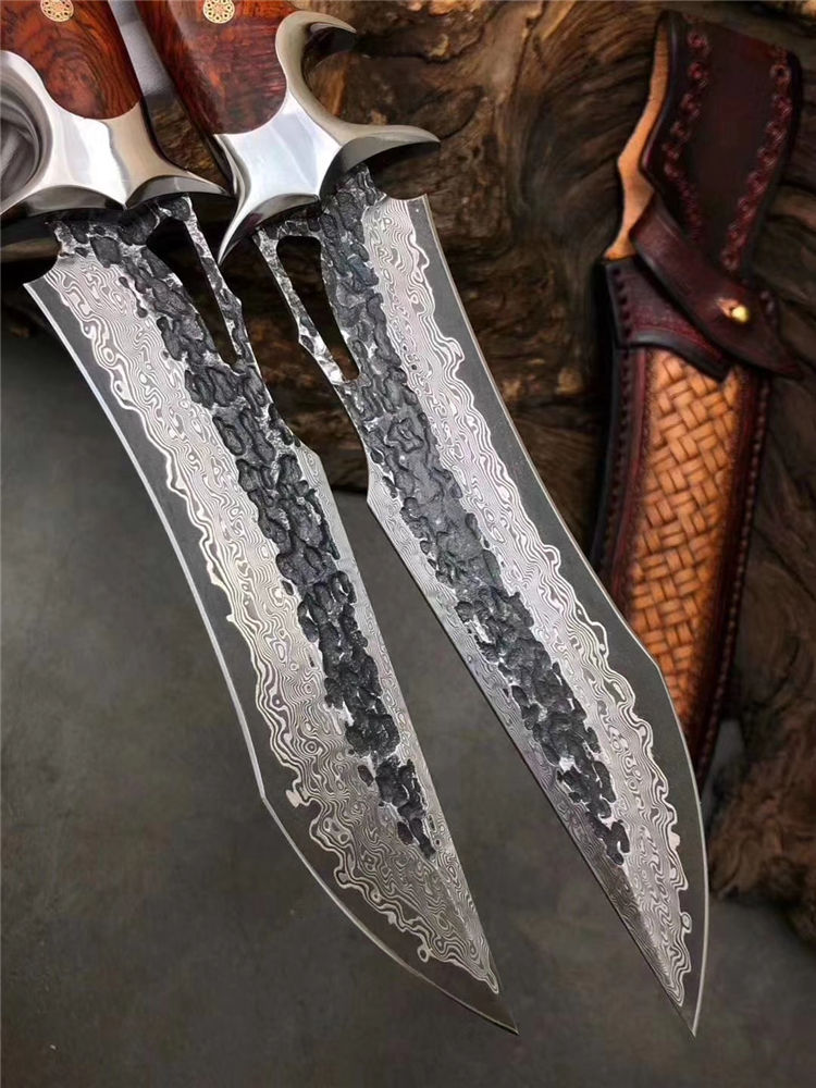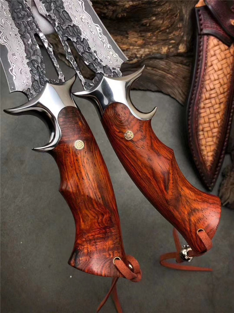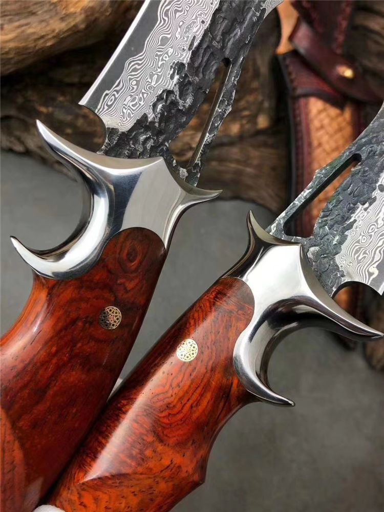 钢材:进口锻造大马士革钢,表面原大马士革花纹保留锻打痕纹