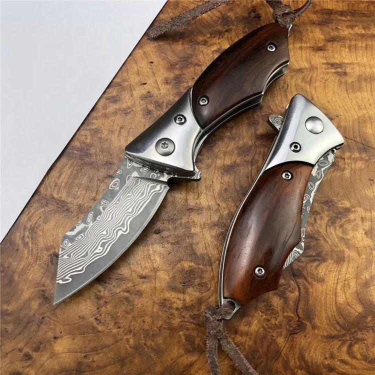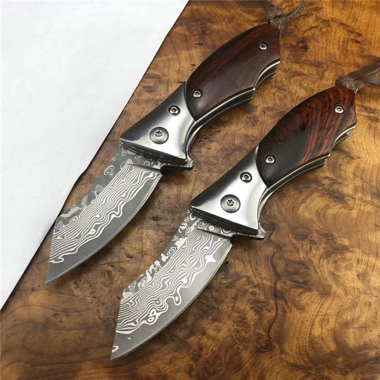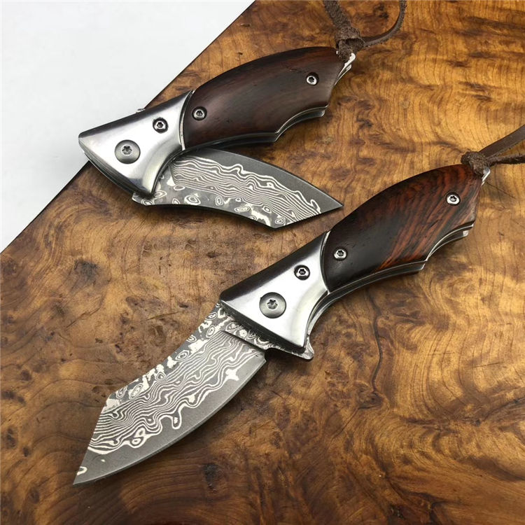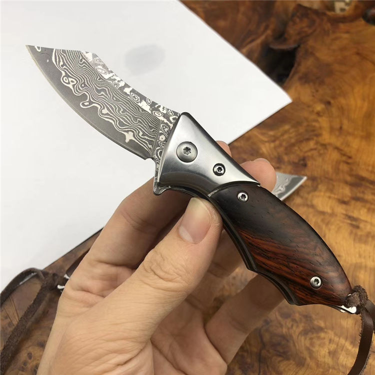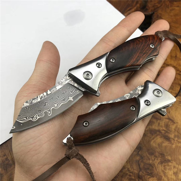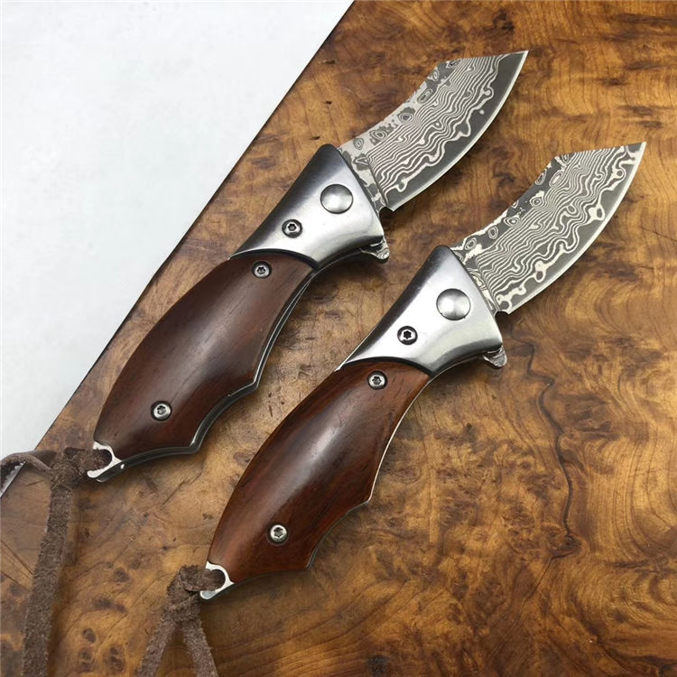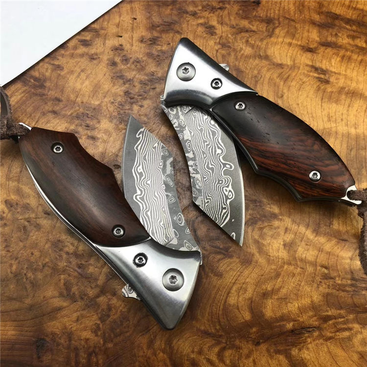 大马士革战鸟折刀 全长:14.5CM 刃长:6.0CM 柄长:8.5CM 刃厚:0.31CM 刃宽:2.1CM 刃材:有心层大马士革钢 柄材:天然黄檀木 硬度:57-60 净重:88克 毛重:130克(含黑布袋、盒子) 表面:表面原有大马士革纹 包装:黑色礼品盒+黑色布袋 其它:内置轴承快开,非常锋利