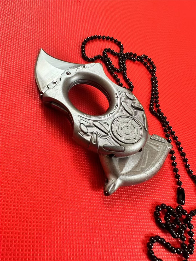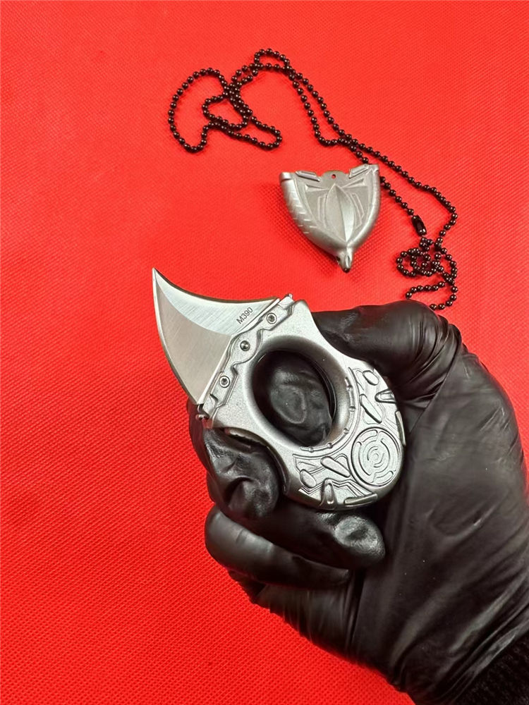 金刚侠机械手刺 全长:9厘米 刃宽:4厘米 刃长:2.8厘米 柄材:注钢 刃材:M390钢 净重量:99.2克 其他:配高档礼品铝合金盒 刀头M390粉末钢(M390粉末钢刃材制作,超级耐磨耐腐蚀,钢材韧性与防锈性保持度非常好,M390钢被称誉为神钢,可知它的综合性是非常好的一种钢材!) 用途广泛,可以当吊坠、茶锥、车载饰品等 备注:手刺两边设有开关:按两边开关即可拉开刀鞘!