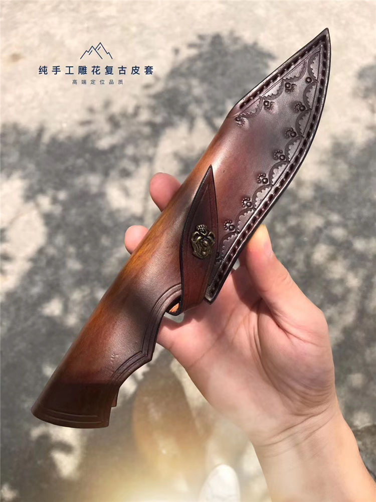 皮套;意大利进口植鞣皮,手工复棕色雕花皮套