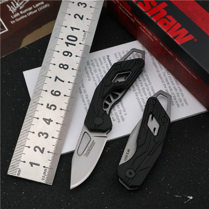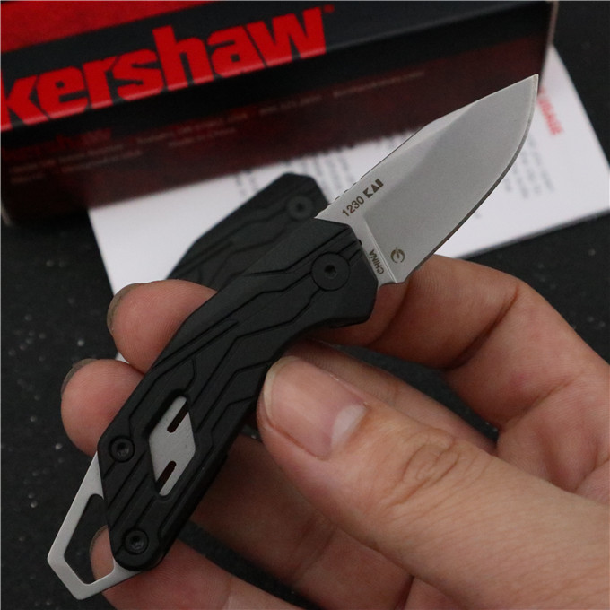 卡秀1230钥匙扣折刀 展开长度:11.1cm 刀刃长度:4cm 闭合长度:7.4cm 刀身钢材:440C 刀刃硬度:58~60HRC 刀刃厚度:1.8mm 表面处理:钻石类金刚石涂层 手柄材质:黑色纤维尼龙 刀净重量:30g 和包装重:48g 包装规格:原厂纸盒、说明书 锁定方式:线锁