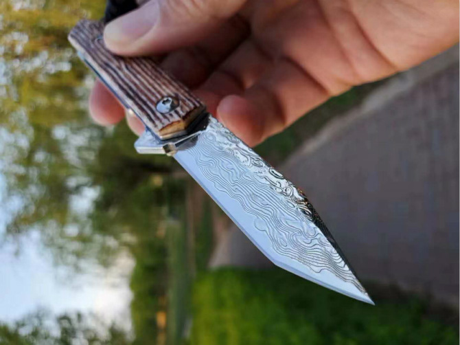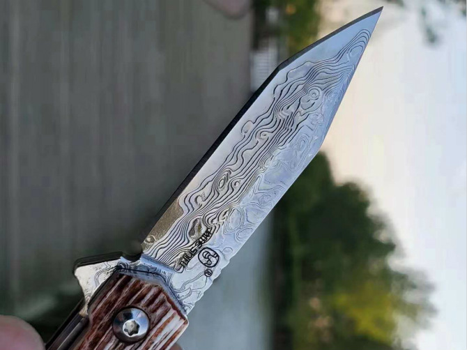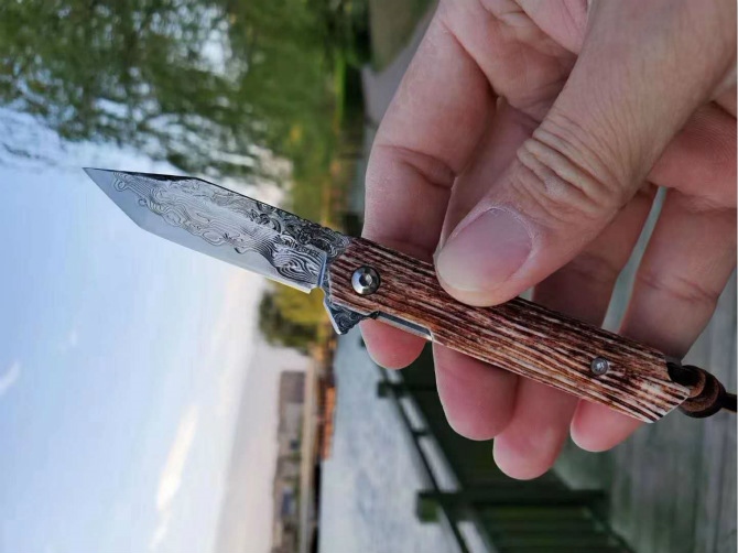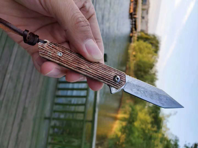 简师傅大马士革骆驼骨小魔方折刀 全长:13.9CM 刃长:6.2CM 刃宽:1.5CM 刃厚:3.0MM 硬度:60HRC