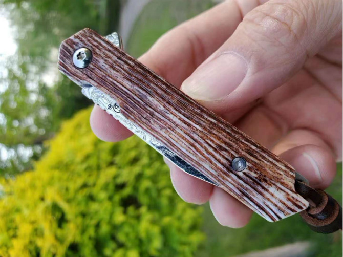 简师傅大马士革骆驼骨小魔方折刀