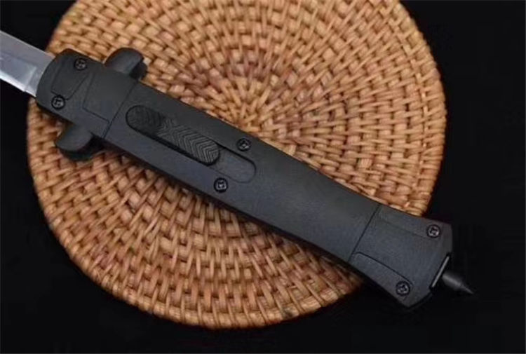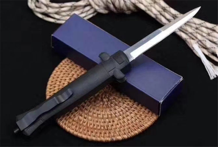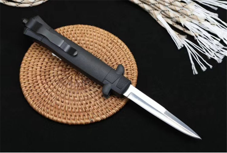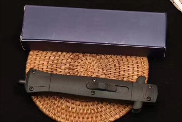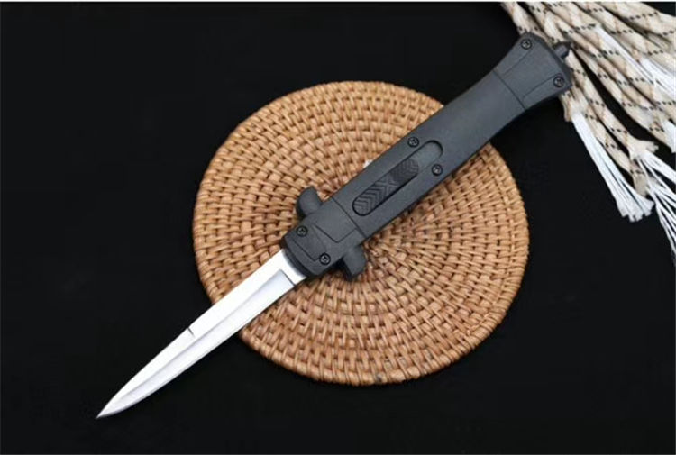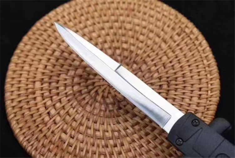 AKC黑夜直出跳刀 全长:23.5CM 刃长:9.1CM 刃宽:1.4CM 刃厚:0.25CM 柄材:ABS工程朔料 刃材:440C 硬度:58度