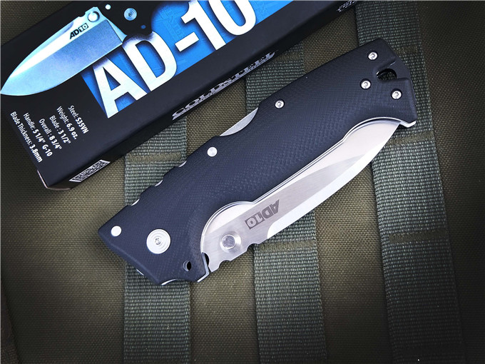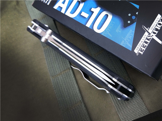 冷钢AD-10折刀 品牌:冷钢 货号:AD-10 结构:背锁 全长:224mm 刀刃钢材:S35VN深冷热处理表面极致拉丝 刀刃硬度:58-60HRC 刀刃厚度:4.0mm 刀刃长度:91mm 手柄长度:135mm 手柄材料及处理:三维加工G10 口袋夹:双灵巧不锈钢口袋/皮带夹 重量:199g 彩盒包装