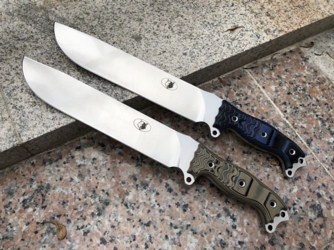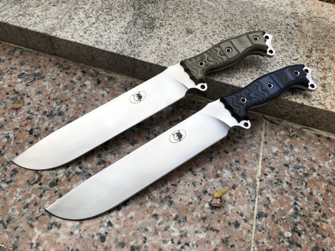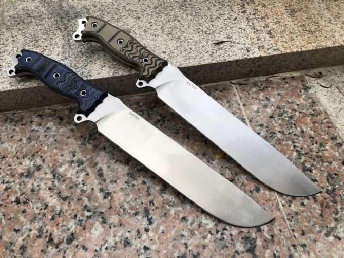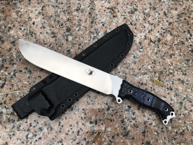 野狼战神直刀 全长:415mm 刃长:260mm 刃宽:48mm 柄长:145mm 钢材:进口Dc53 硬度:60/61真空油淬 柄材:进口G10 重量:895g含 刀鞘:配进口K鞘