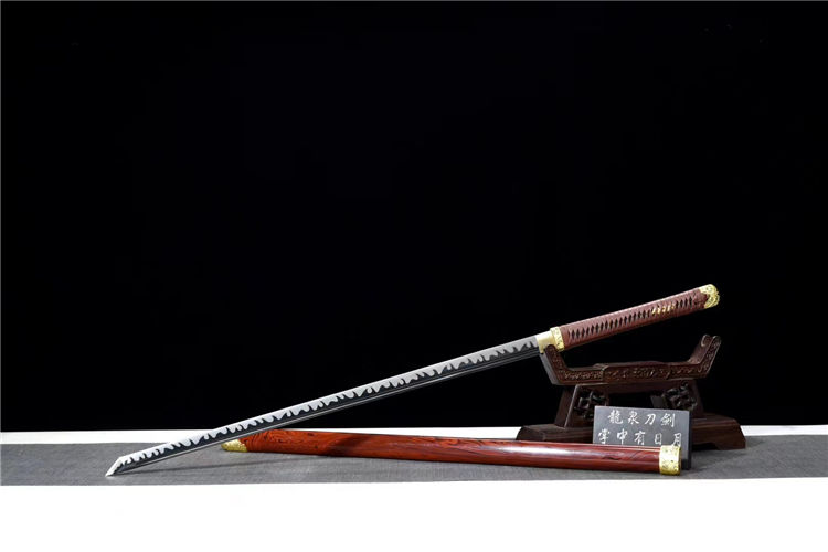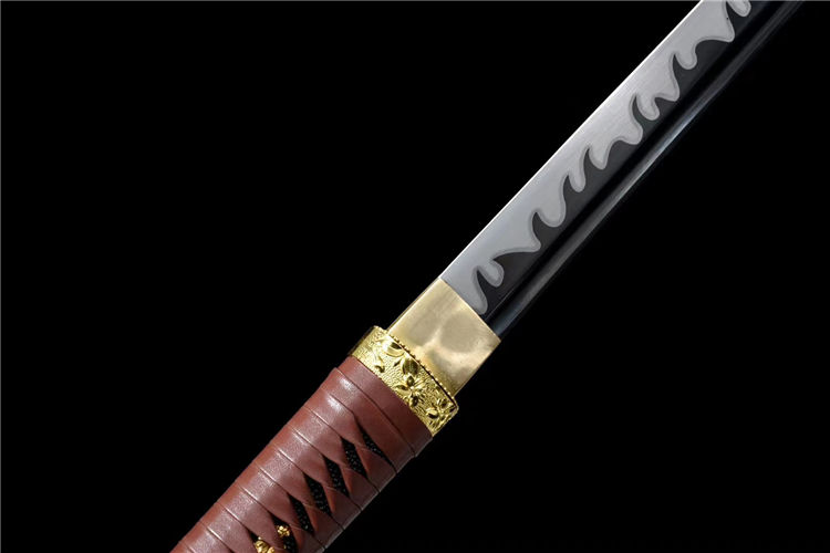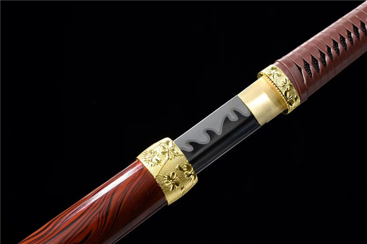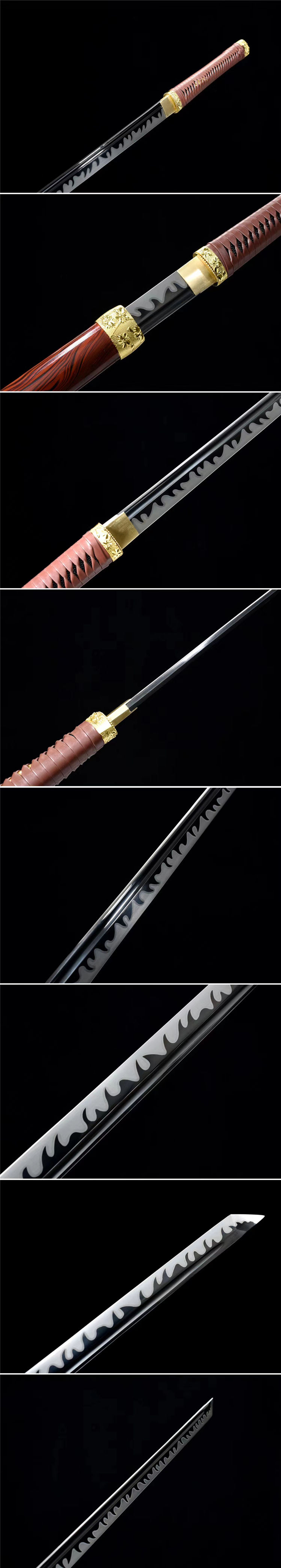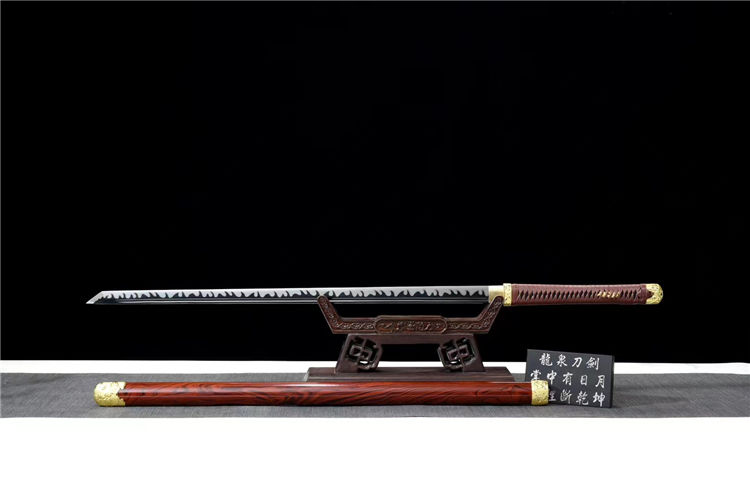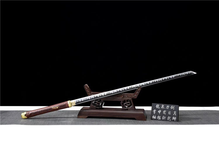 正国武士刀 全长:106cm 刃长:72.5cm 宽:3.2cm 厚:0.75cm 重约:1.9kg 鞘:不绣钢烤漆包实木 配件:合金金色 韧材:高速钢发黑推磨 赠送:锦盒