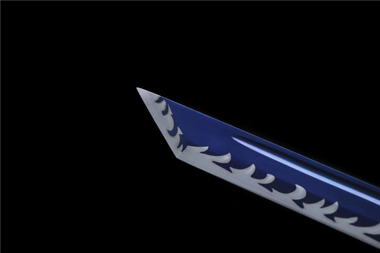 刃材:极限锰钢手工锻造、大血槽设计、烤蓝,️刃口采用双线“火焰纹”推磨工艺,刃厚将0.7cm改为0.4cm、使得性能上得到了前所未有的突破